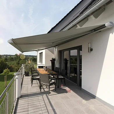 Vielseitig, funktional, begeisternd: Diese kompakte Kassetten-Markise bietet alles, was einen zuverlässigen Sonnenschutz ausmacht. Die ovale Kassette fügt sich stilvoll in jede Fassade ein und schützt Tuch sowie Gelenkarme vor Wind und Wetter.